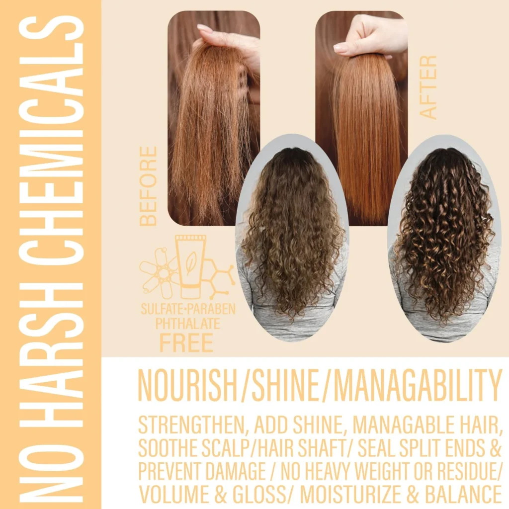 - Nourishes, hydrates, and revitalizes dry, brittle hair