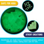 - STICKY CREATIONS: StickiKubes are mini stacking cubes that stick to anything except fabric. Kids can use them to make their own custom 2D and 3D designs, as well as to decorate anything else in the house, office, or classroom!