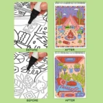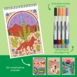 - Comes with 20 meditative scenes and 4 double-sided markers (8 vibrant colors) in a detachable storage tray