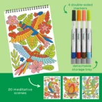 - Comes with 20 meditative scenes and 4 double-sided markers (8 vibrant colors) in a detachable storage tray