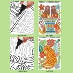 Lifelines FlowArt Pads are guided art meditations designed to help you achieve a calming flow state. Each scene is thoughtfully crafted to encourage repetitive, relaxing movements, promoting mindfulness and reducing stress. Trace-by-Groove includes 20 meditative scenes and four double-sided markers in a detachable storage tray. Engage in a meditative tracing activity by tracing the grooves then filling them in with vibrant color, creating beautiful jungle scenes. Let the rhythmic motion of tracing bring you a sense of calm. Compact and portable, this pad is perfect for calming your mind on-the-go, unwinding before bed, or taking a work or study break to de-stress.