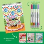- Comes with 20 meditative scenes and 4 double-sided markers (8 vibrant colors) in a detachable storage tray