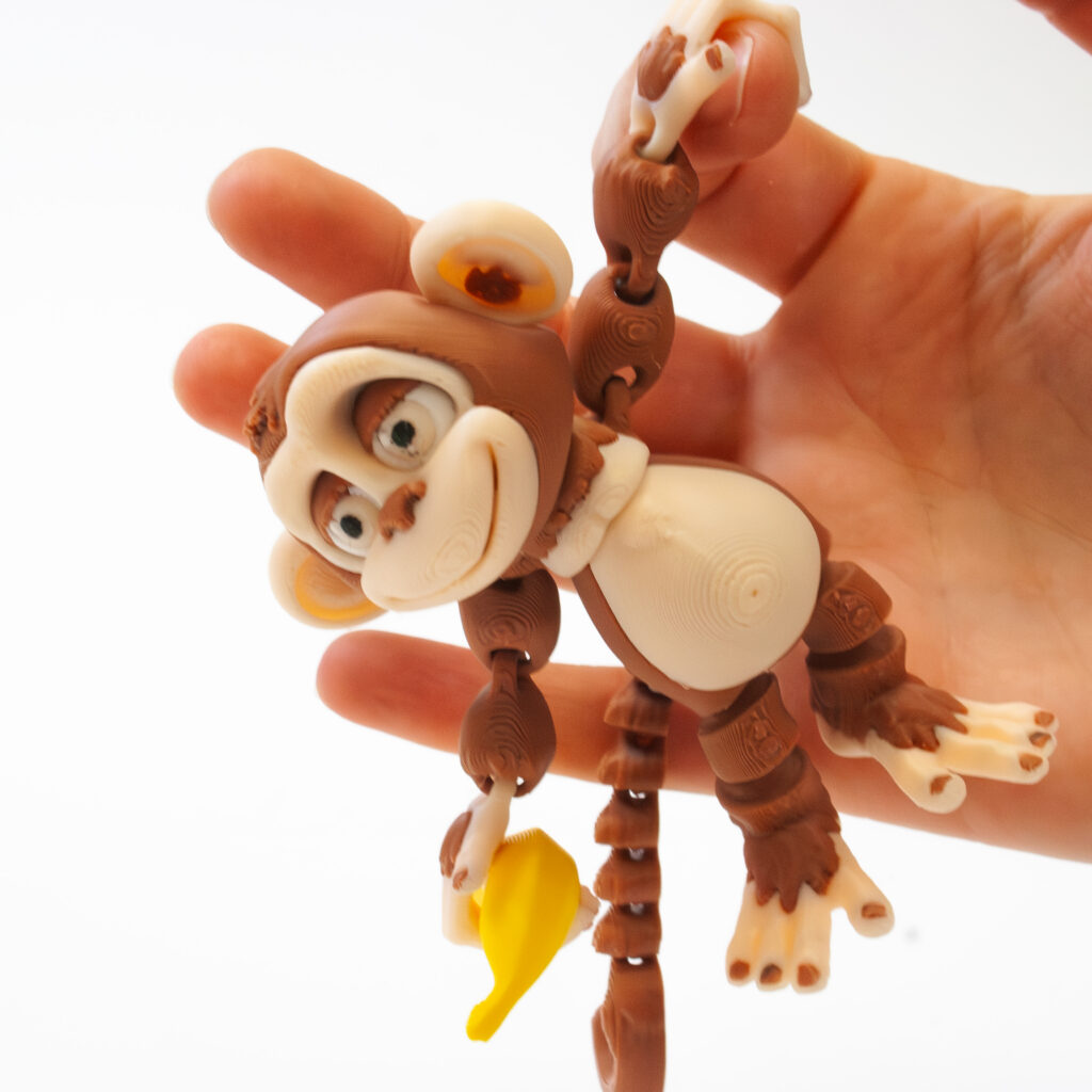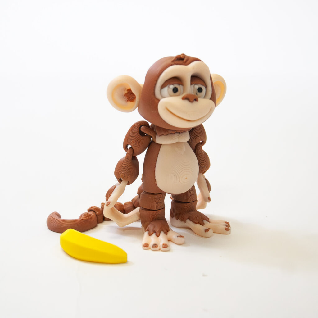 Each Twiddle Monkey is 3D printed and comes with a fun banana accessory. It measures approximately 4″ long from head to tail.