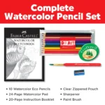 Contents Include: 10 Watercolor EcoPencils with a clear zipper pouch, 24-page Watercolor Paper Pad, 1 Pencil Sharpener, 1 Paintbrush and 1 20-page Instruction Booklet