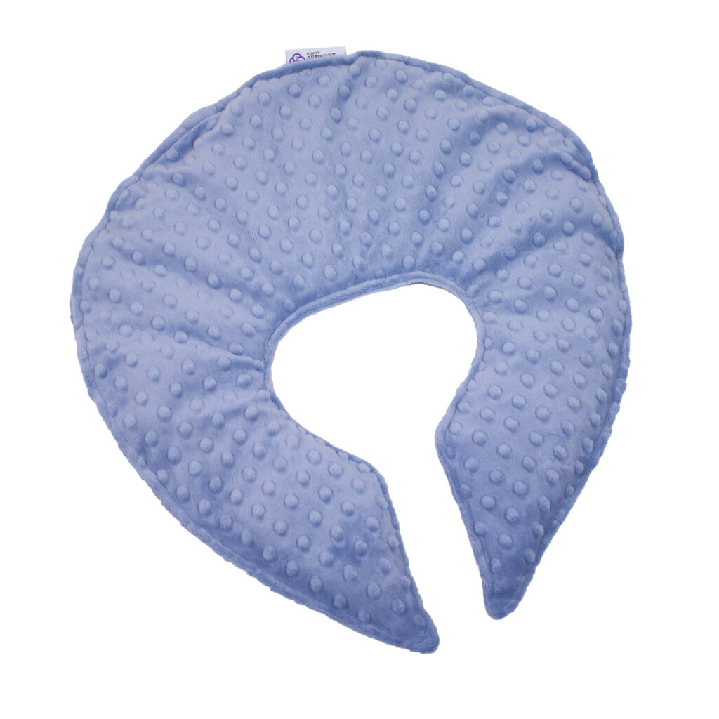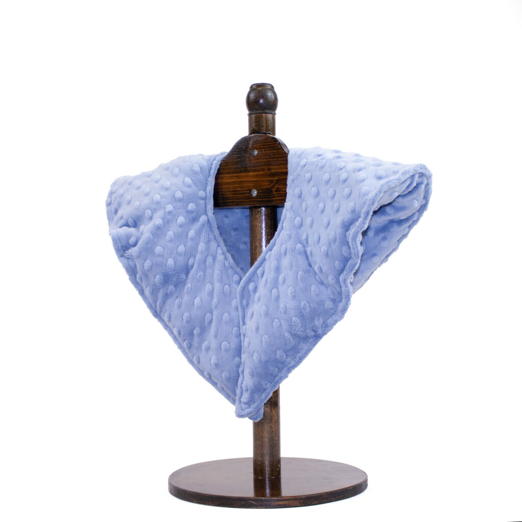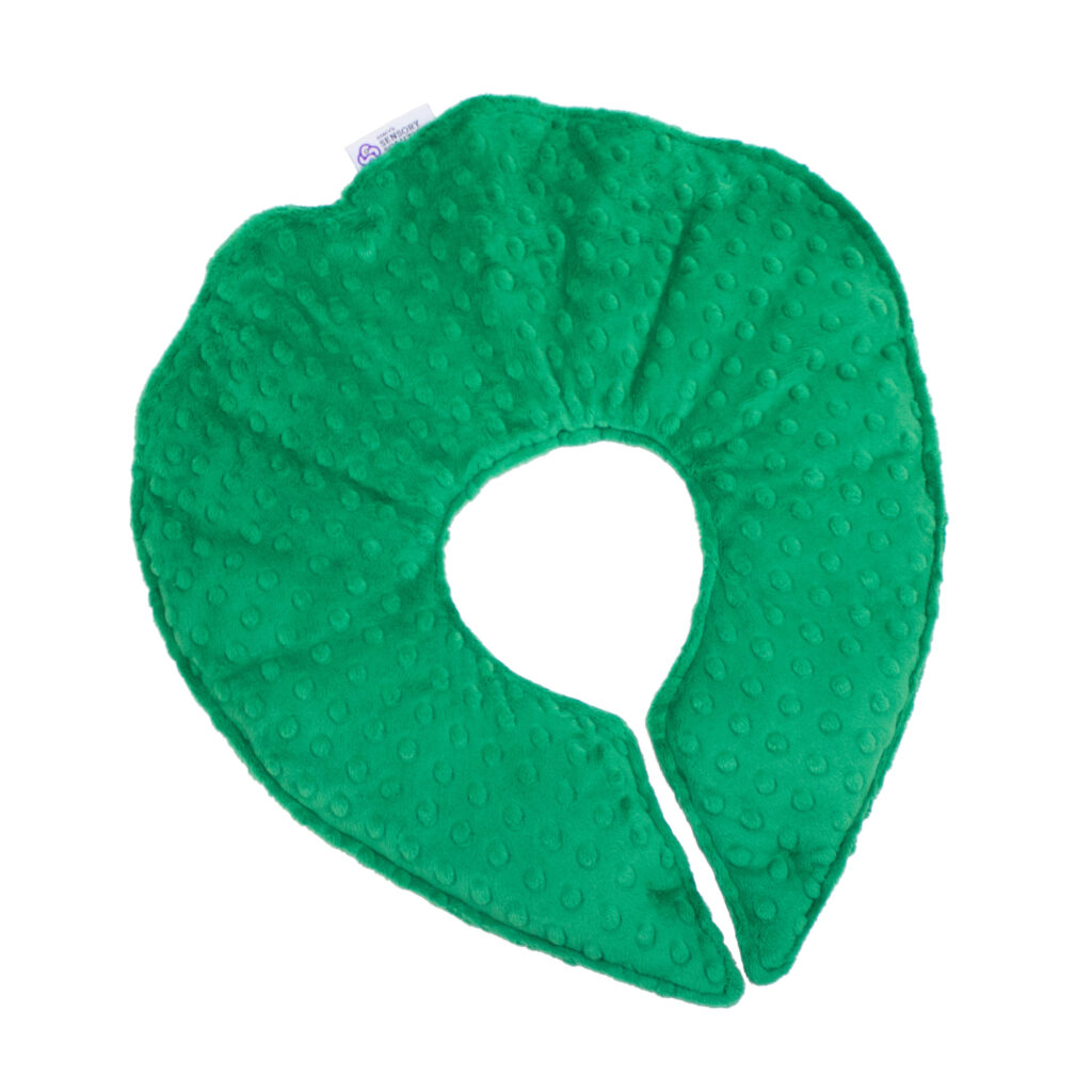 This is no ordinary neck wrap. Weight is evenly distributed to provide maximum sensory input on upper shoulders and neck area. This provides calming through pressure. This large size has 5 lbs. of weight and is perfect for adults or older children who are soothed and calmed by the heavier weight.