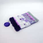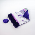 The multi-colored pad features sections styled around the central panel of a fun purple polka dot circle pattern! Each panel features different, interesting textures – such as dotted fabric, textured minky, fuzzy vibrant purple fabric, and more, plus two rows of soft loops that are perfect for threading fingers through. These different textures are good for visual and textural sensory needs! The pad is backed with soft, purple minky fabric. A wrist weight fidget is included which can be attached to one of the four tabs.
