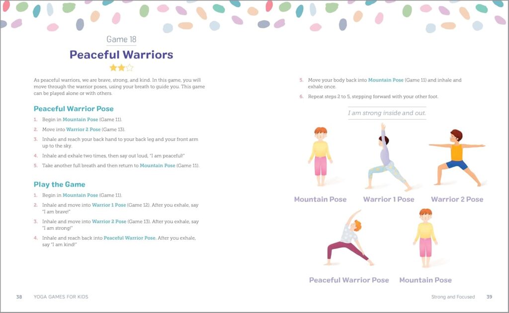 - A regular routine—Give kids the foundation to create a regular yoga practice with poses perfect for starting the day, sustaining energy, and winding down for a restful night’s sleep.